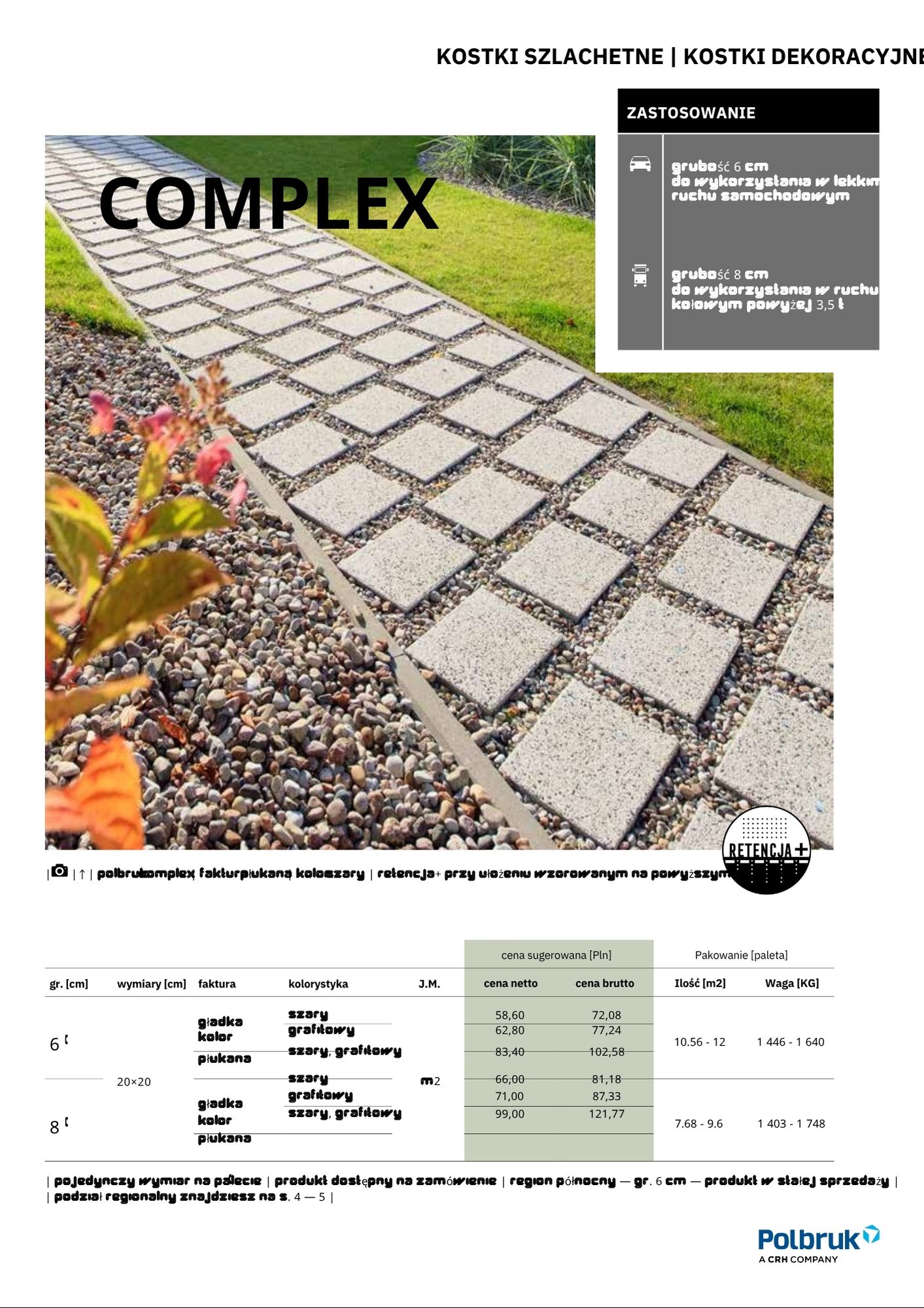 Kostka Brukowa Complex, o klasycznym kształcie kwadratu, jest polecana osobom preferującym minimalizm i prostotę formy. Stanowi doskonałe rozwiązanie do tworzenia funkcjonalnych nawierzchni wokół domu, a także w przestrzeniach publicznych, takich jak place, pasaże czy promenady. Dostępne grubości: 6 cm, 8 cm Zalety produktu: Klasyczny kształt kwadratu, minimalistyczny i prosty design, dostępna w fakturze gładkiej i płukanej, dwie grubości dla różnych zastosowań. Kostka Brukowa Complex to doskonały wybór dla osób ceniących estetykę, funkcjonalność i uniwersalne rozwiązania. |