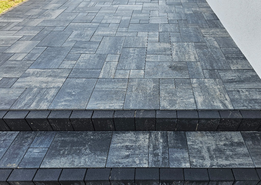 KKostka Brukowa Toledo, dzięki zestawowi różnych rozmiarów, jest idealna do tworzenia atrakcyjnych mozaik na podjazdach, chodnikach, tarasach i alejkach ogrodowych.