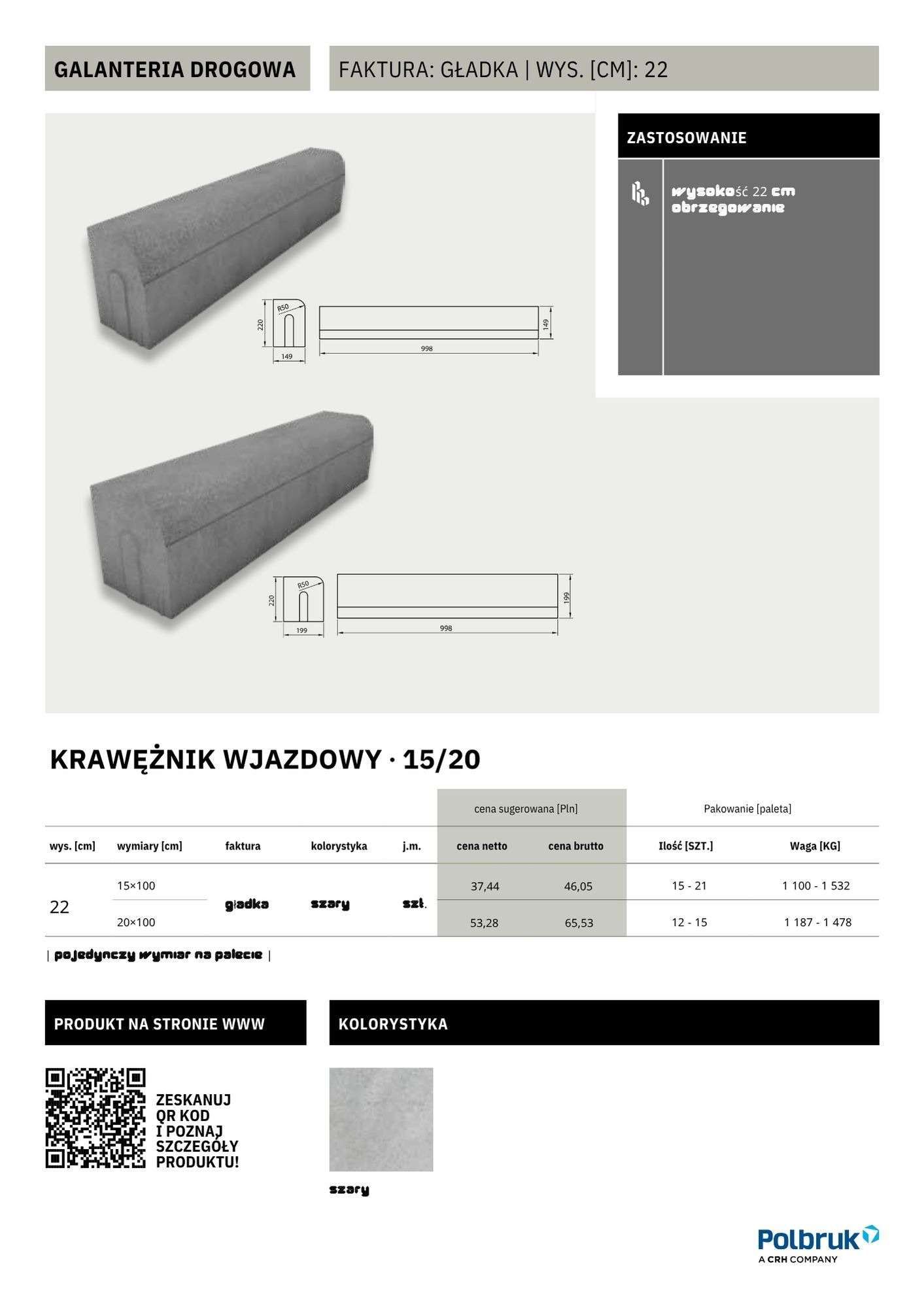 | Dostępna jest szeroka gama krawężników, w tym wjazdowe, łukowe, skośne, trapezowe, ciężkie i drogowe. Są one doskonałym uzupełnieniem nawierzchni asfaltowych, chodników z kostki brukowej oraz parkingów osiedlowych. Krawężniki przyczyniają się do uporządkowania przestrzeni urbanistycznej, subtelnie integrując się z charakterem otoczenia. Dostępne kolory: Szary Dostępne faktury: Gładka Wysokość: 22 cm Zalety produktu: Ułatwia tworzenie funkcjonalnych wjazdów, wysoka wytrzymałość i trwałość, porządkuje przestrzeń i zapewnia bezpieczeństwo, odporność na warunki atmosferyczne. Krawężnik Wjazdowy to doskonały wybór dla osób ceniących estetykę, trwałość i funkcjonalność przy budowie wjazdów. |