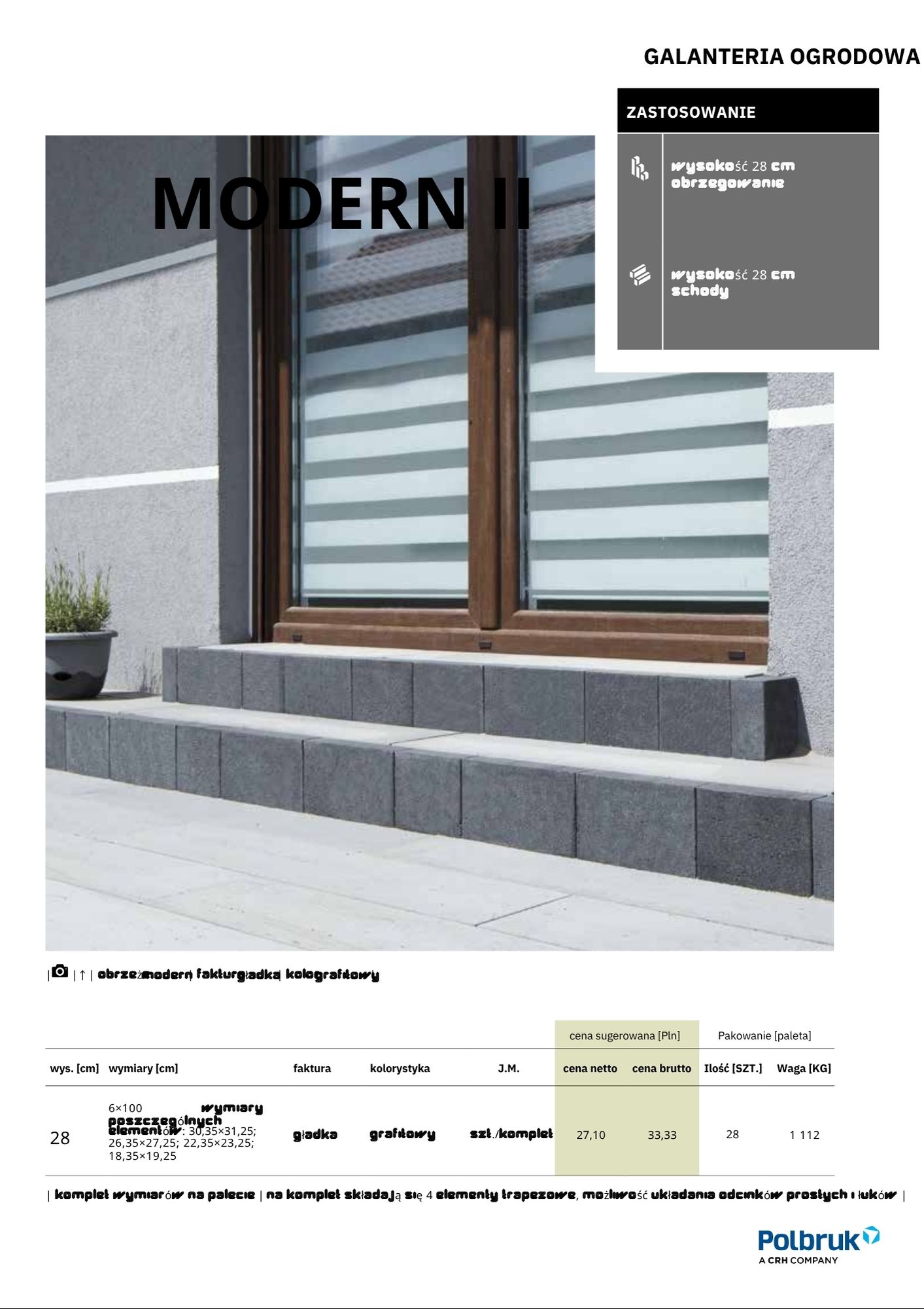 | Praktyczność i styl w jednym. Otoczenie domu to więcej niż tylko zadbane trawniki i równe ścieżki ogrodowe. Zróżnicowane przestrzenie oraz efektownie ukształtowane płaszczyzny potrzebują spójnych przejść i estetycznych połączeń – to właśnie zadanie, z którym Obrzeże Palinea radzi sobie najlepiej. Dostępne kolory: Grafitowy Dostępne faktury: Utwardzana Zalety produktu: Stylowy i praktyczny design, umożliwia tworzenie spójnych przejść i połączeń, trwałe i estetyczne, idealne do porządkowania przestrzeni ogrodowej.OBRZEŻE PALINEA to doskonały wybór dla osób ceniących estetykę, trwałość i funkcjonalność w aranżacji otoczenia domu. |
