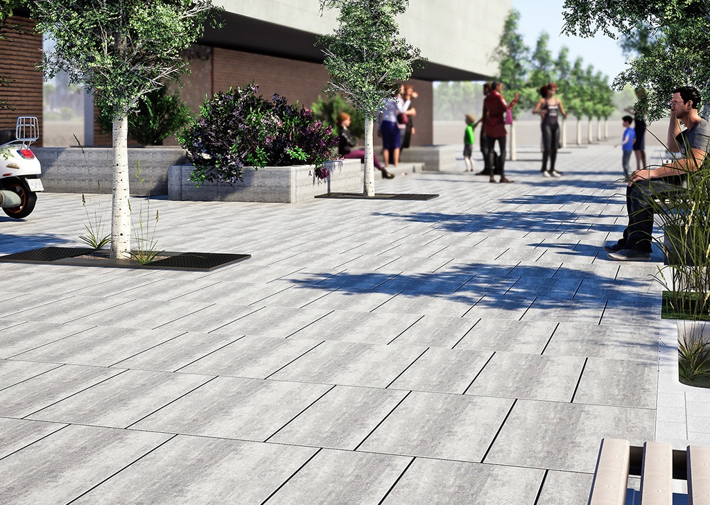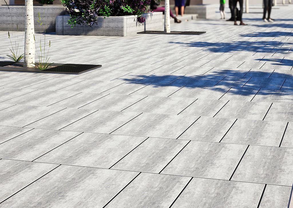 Wielkoformatow płyta betonowa Plano Mix to zestaw elementów o dużych formatach, dostępny w bogatej palecie kolorystycznej i różnorodnych wykończeniach. Doskonale nadaje się do aranżacji nowoczesnych deptaków, alei oraz promenad we współczesnych przestrzeniach miejskich.