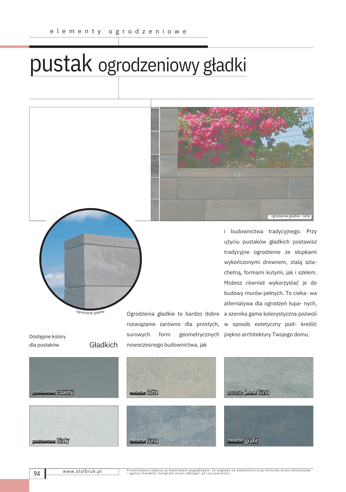 Ogrodzenia gładkie to bardzo dobre rozwiązanie zarówno dla prostych, surowych form geometrycznych nowoczesnego budownictwa, jak i budownictwa tradycyjnego. Przy użyciu pustaków gładkich postawisz tradycyjne ogrodzenie ze słupkami wykończonymi drewnem, stalą szlachetną, formami kutymi, jak i szkłem. Możesz również wykorzystać je do budowy murów pełnych. To ciekawa alternatywa dla ogrodzeń łupanych, a szeroka gama kolorystyczna pozwoli w sposób estetyczny podkreślić piękno architektury Twojego domu.