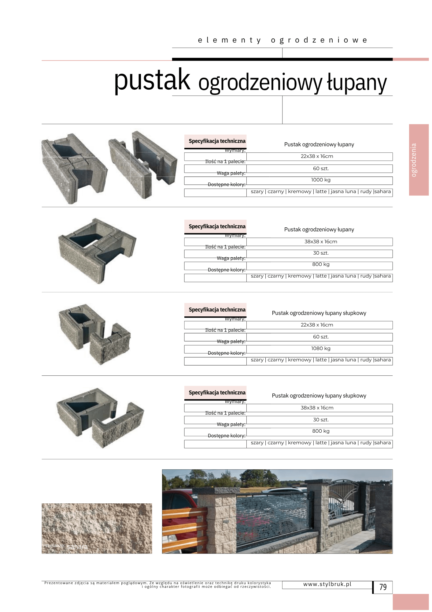 Pustak Ogrodzeniowy Łupany 22x38x16 cm Zakres cen: od 20,00 zł do 24,00 złsztuka